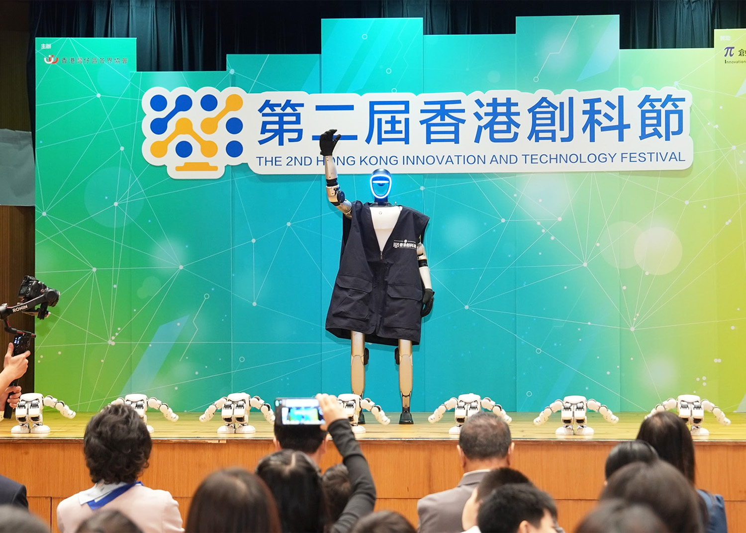 典禮尾聲,大會特別安排了精彩的AI機器人表演節目,九台智能機器人流暢的舞步和生動的互動,為現場帶來充滿科技感的壓軸演出。頒獎典禮圓滿結束後,參加者興致未減,繼續投入到第二屆香港創科節「社產學研」展帶來的豐富科技活動與互動體驗中,現場氣氛熱烈。